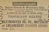 Trafalgar Square station had two side platforms 291 feet in length with unique brown, green and cream tile pattern to help passengers identify the station without seeing the name. The station name appeared on the platform wall tiles in brown letters 15" with ‘way out’ and ‘no exit; signs also incorporated into the tiling. There were no surface buildings with steps from Trafalgar Square leading down to an underground booking hall.