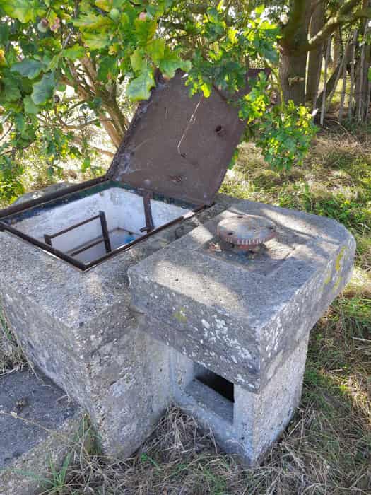 OPEN All surface features remain intact but the ventilation louvres are missing. The hatch is open. Internally the post is clean and tidy with white painted walls. Some wiring remains together with the following items of furniture: Cupboards, twin bunks, single bed.