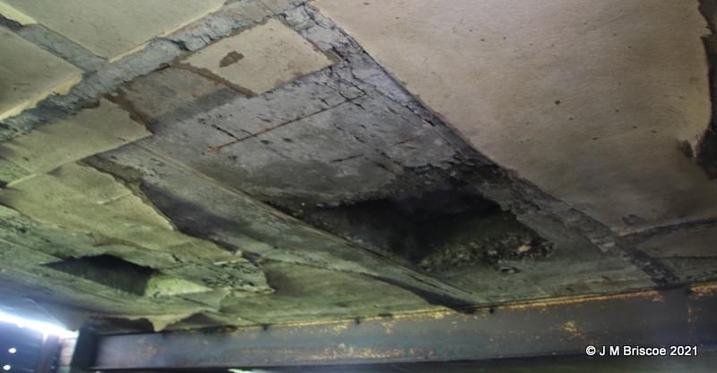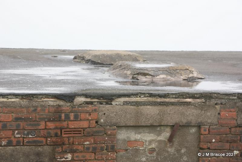 There are two concrete(?) “lumps” on the roof though these might be covering square holes in the roof that can be seen in the ceiling when photographed through the open window.