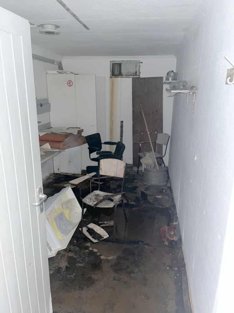 The supports for the fence line are now gone. On the inside many artefacts still remain which include, cupboard, drawers, chemical toilet, toilet paper, brush, documents, carpet, cleaning items, table, pens, screws, mattresses for the beds, beds stands, visitor booklet, chair, pickaxe, There is also a sign that says Edinburgh 14 . 21 post, with the sump pump also still intact. The ROC post is in good condition and pretty good for a 1991 shut down.