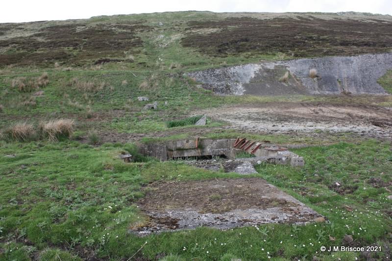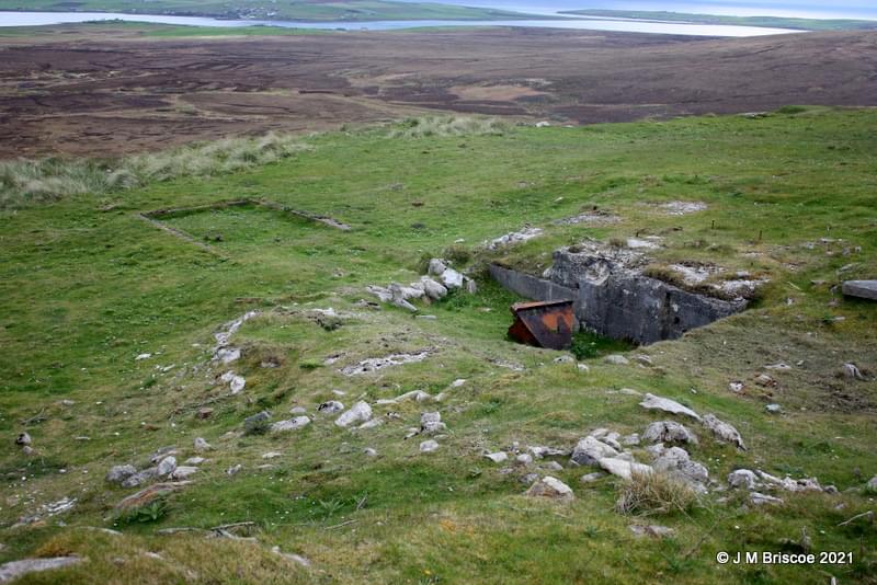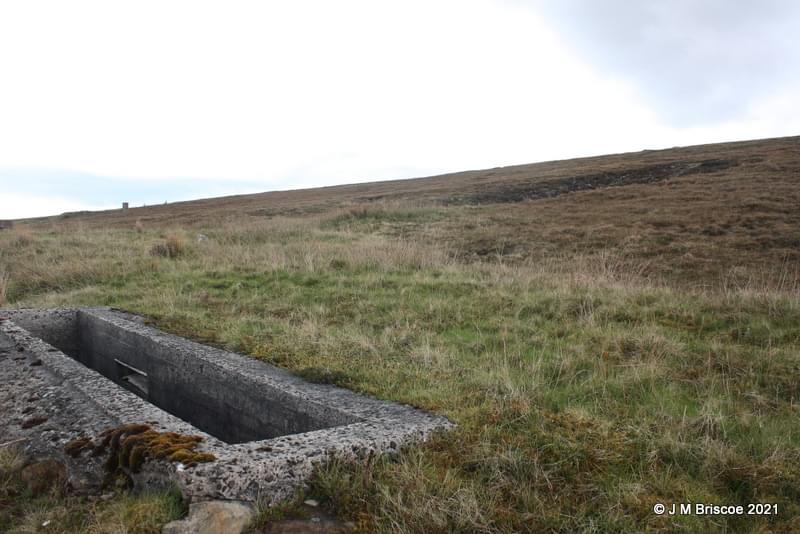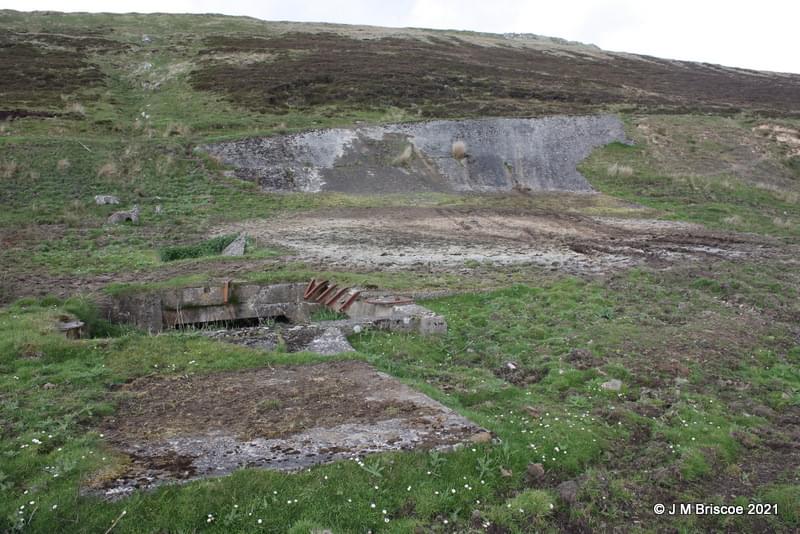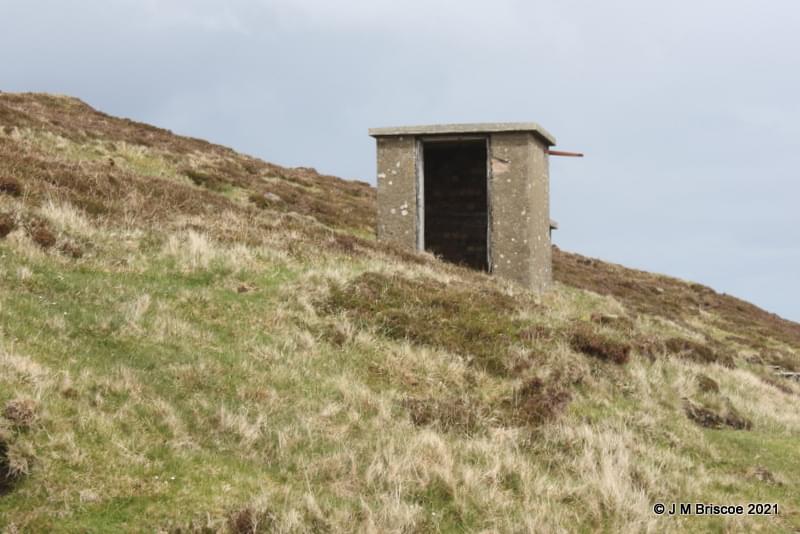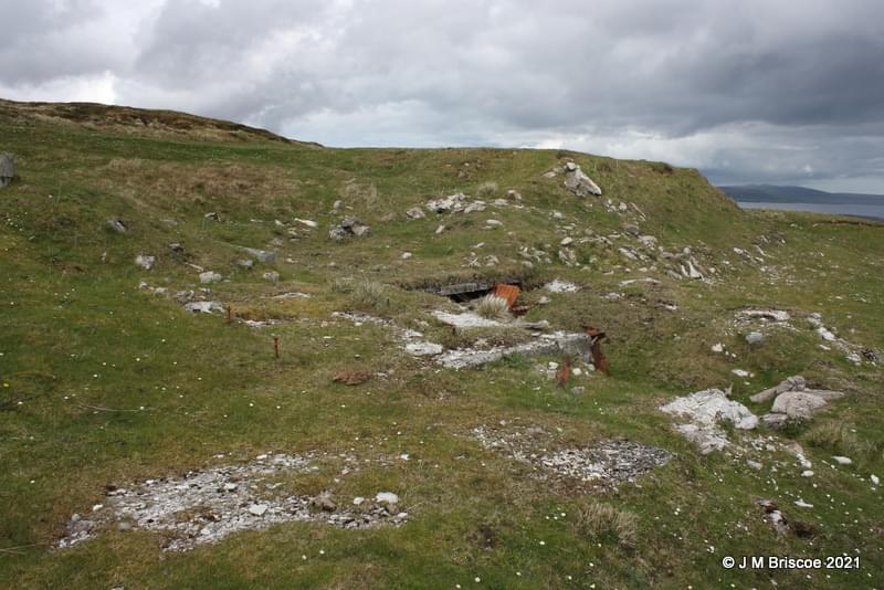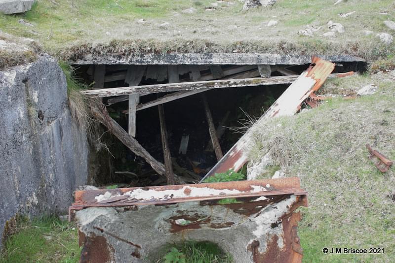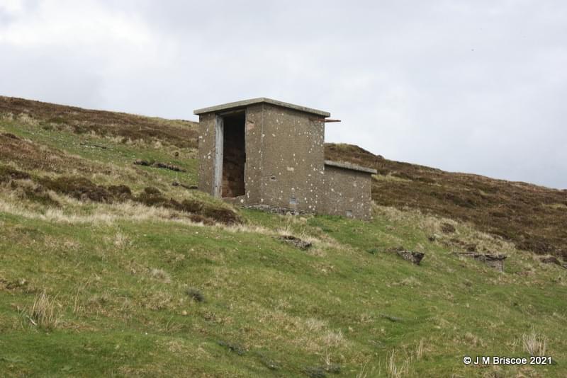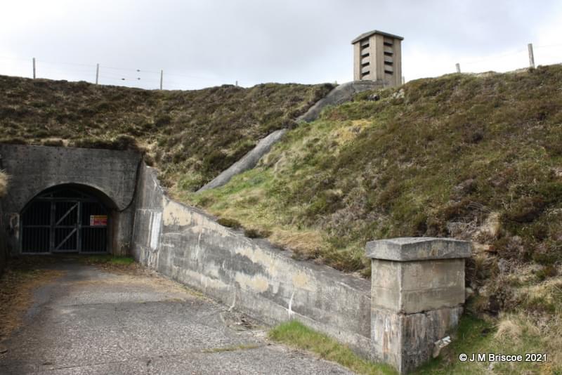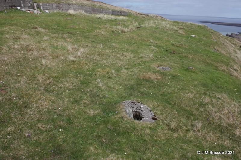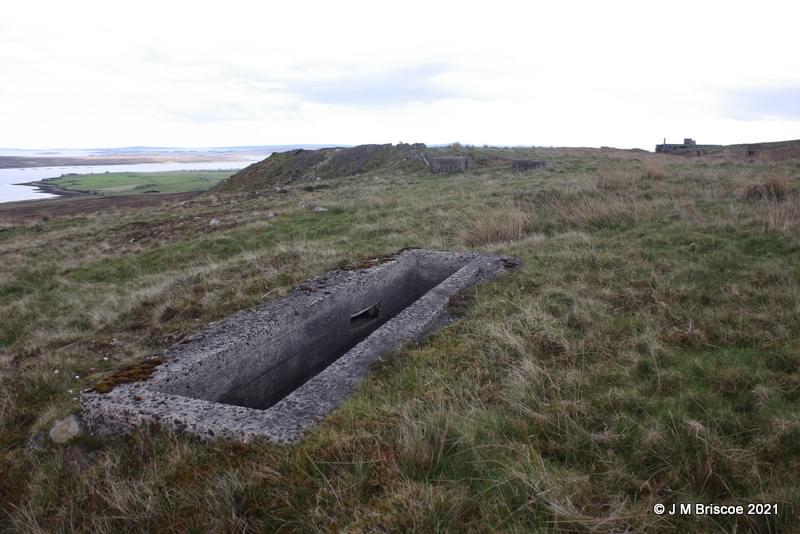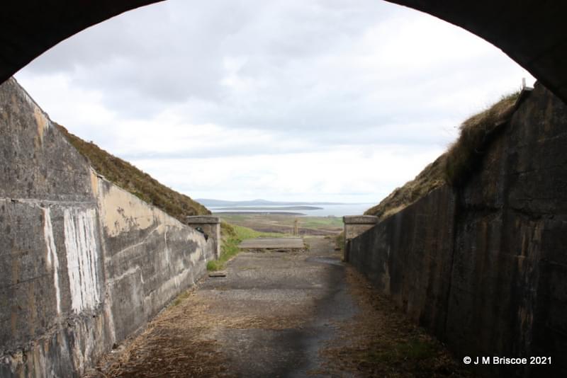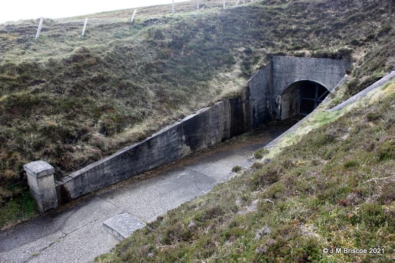 Wee Fea Underground Oil Fuel Tanks are near to the HMS PROSPERINE building and appear to be very similar to the ones at Inchindown. There are filter beds just below the entrance to the tunnel. There are various structures, hollows, holes etc around the hillside, some from the construction of the tanks and tunnels. No access was made to the tunnels, all photographs taken from outside. There are some internal photographs on Canmore 174004. The pumping station is described on Canmore 73400.