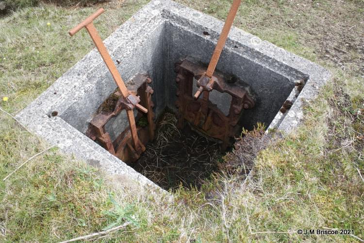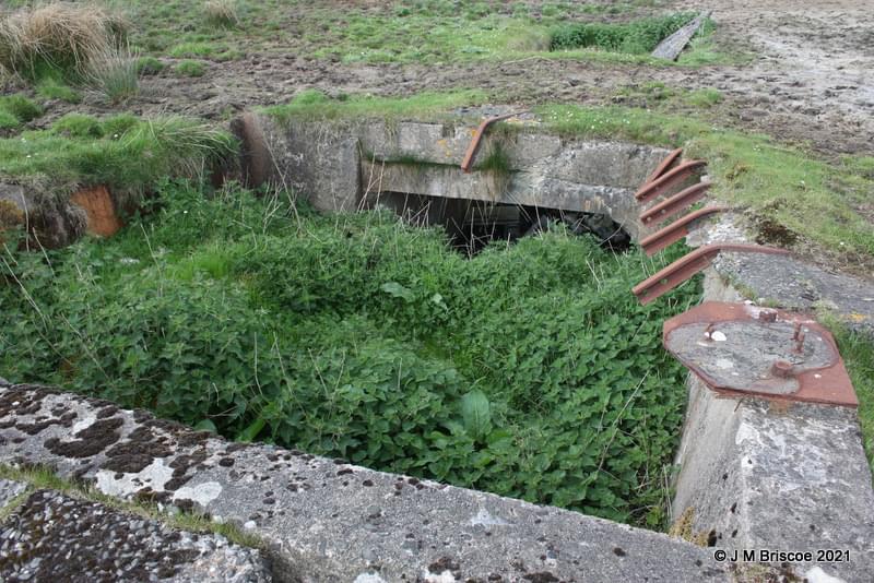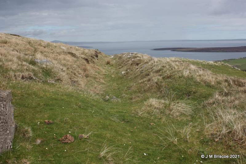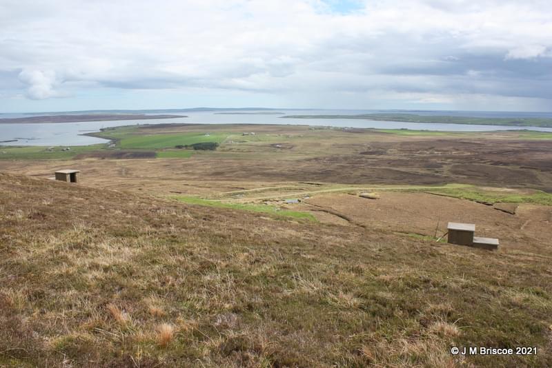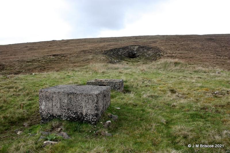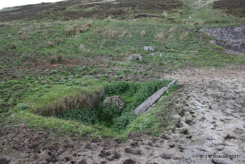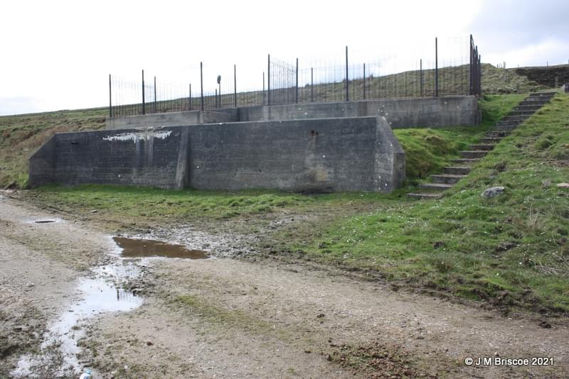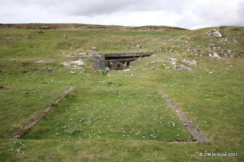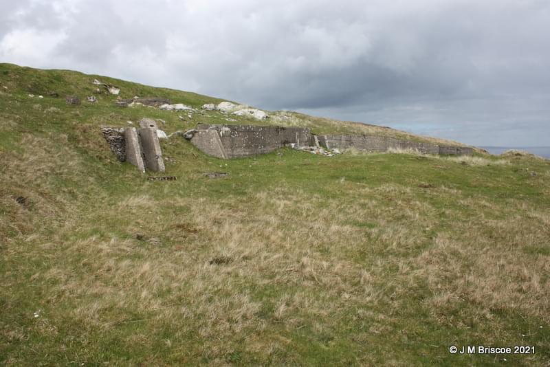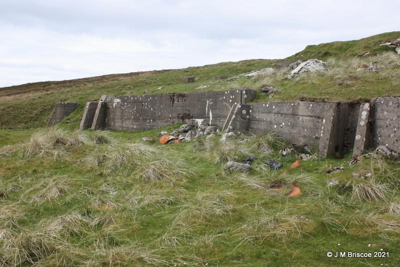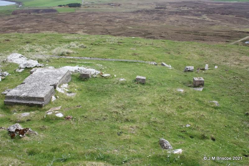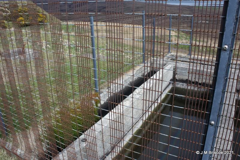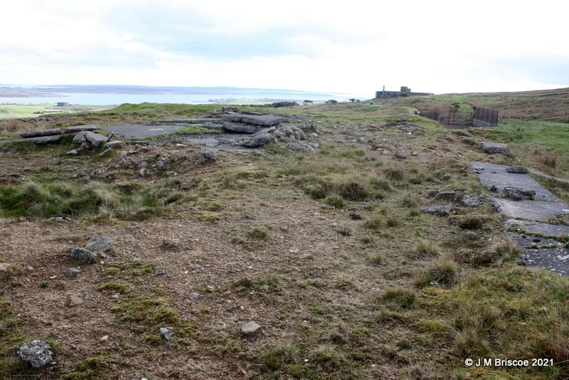 Wee Fea Underground Oil Fuel Tanks are near to the HMS PROSPERINE building and appear to be very similar to the ones at Inchindown. There are filter beds just below the entrance to the tunnel. There are various structures, hollows, holes etc around the hillside, some from the construction of the tanks and tunnels. No access was made to the tunnels, all photographs taken from outside. There are some internal photographs on Canmore 174004. The pumping station is described on Canmore 73400.