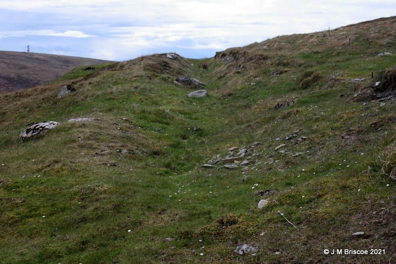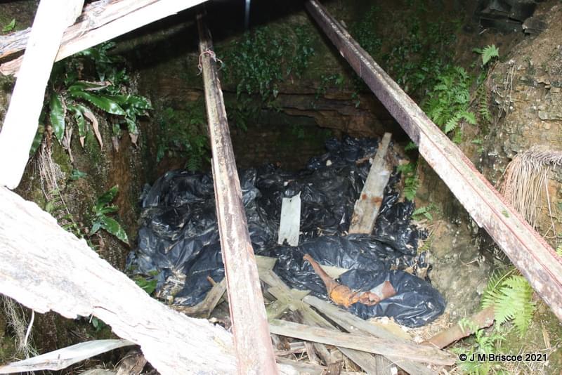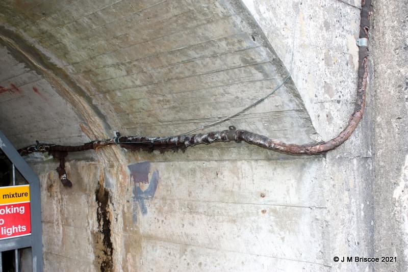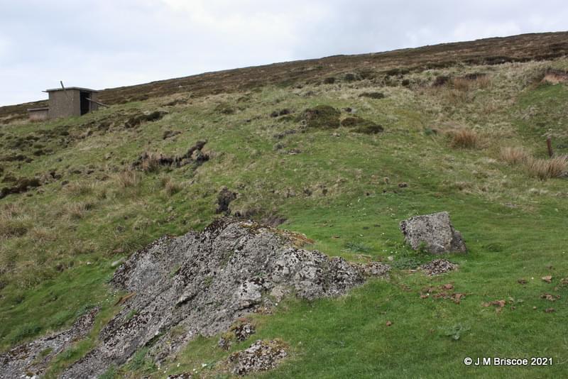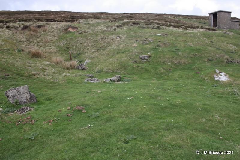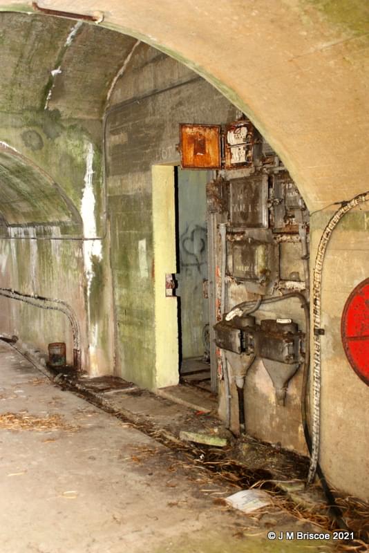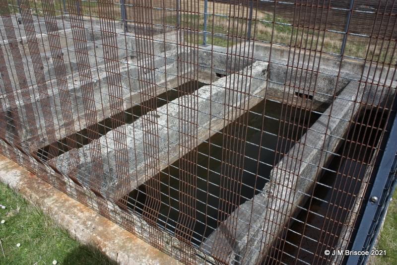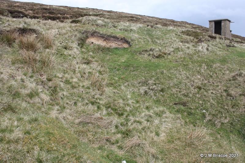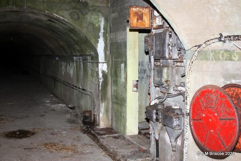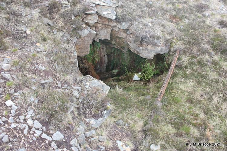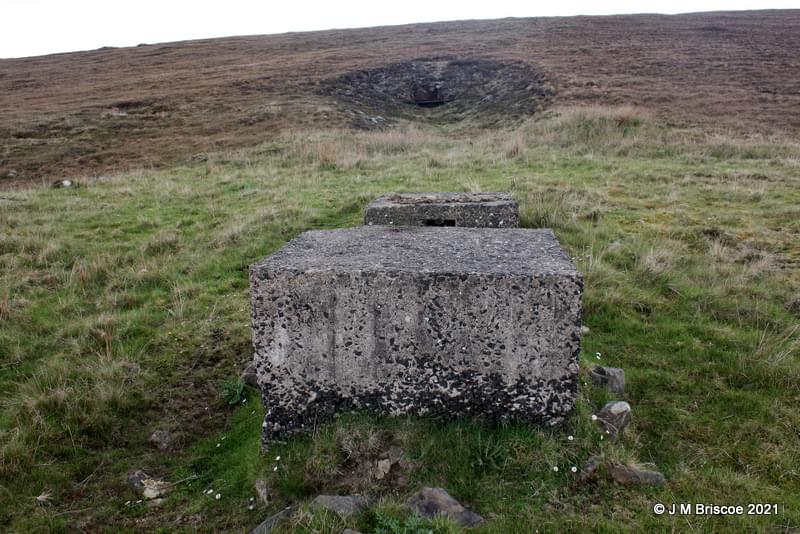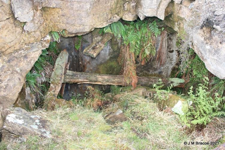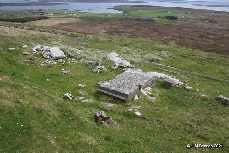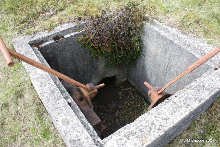 Wee Fea Underground Oil Fuel Tanks are near to the HMS PROSPERINE building and appear to be very similar to the ones at Inchindown. There are filter beds just below the entrance to the tunnel. There are various structures, hollows, holes etc around the hillside, some from the construction of the tanks and tunnels. No access was made to the tunnels, all photographs taken from outside. There are some internal photographs on Canmore 174004. The pumping station is described on Canmore 73400.