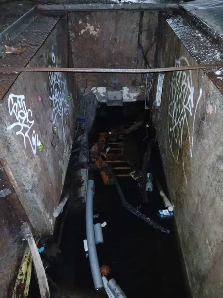 After closure, the health centre was demolished in the late 1990’s because, according to the Southwark EPO, local children kept breaking in to it. The bunker below remains intact. The plot of land is now derelict awaiting redevelopment, one side of the stairway into the bunker below has been filled with concrete leaving a six foot drop onto the steps. A hinged grille has been fixed over the remaining part of the well and this is kept securely locked.
